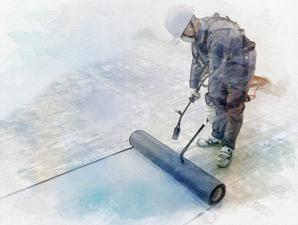 アスファルト防水は、アスファルトを主成分とする防水材料を使用して、建物や構造物の屋根や地下部分に防水層を作る工法です。アスファルトシートを重ねて貼ることで、水の浸入を防ぎ、耐久性を向上させます。主に屋根や地下の防水に使用され、耐候性や耐水性が高い特徴があります。